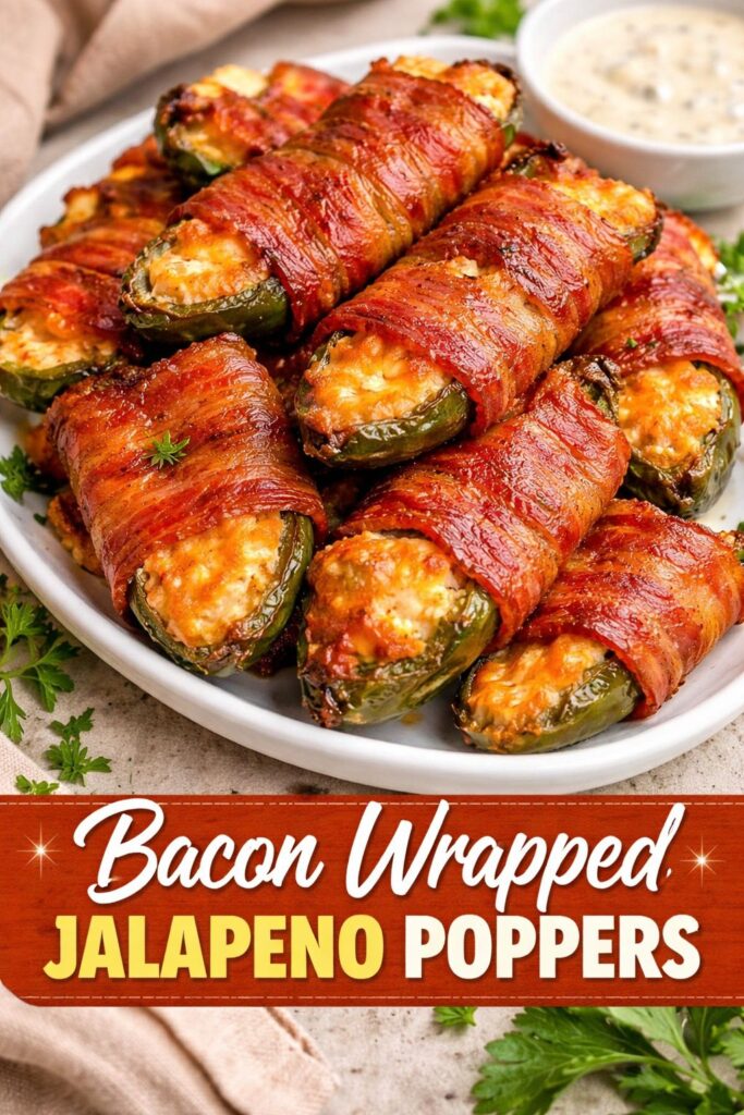 Delicious bacon-wrapped jalapeno poppers filled with creamy cheese, perfect for gatherings and celebrations.