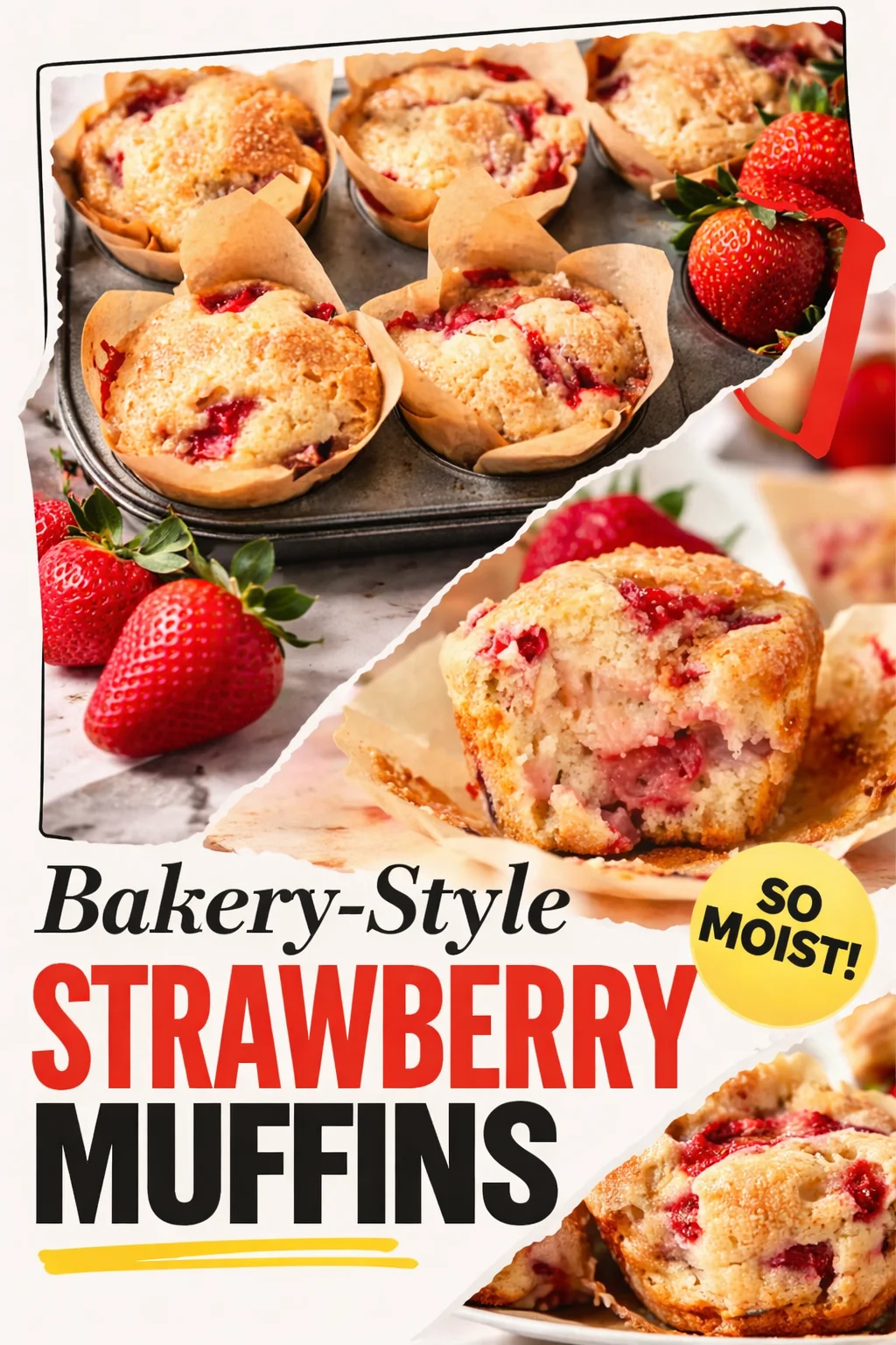 Keywords: strawberry muffins, bakery-style muffins, breakfast recipe, easy baking, strawberry desserts