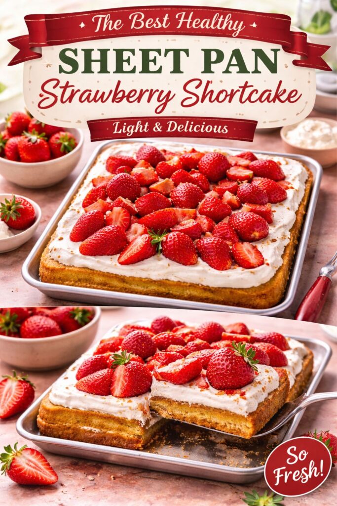Keywords: strawberry shortcake, healthy dessert, sheet pan dessert, summer recipes, quick dessert