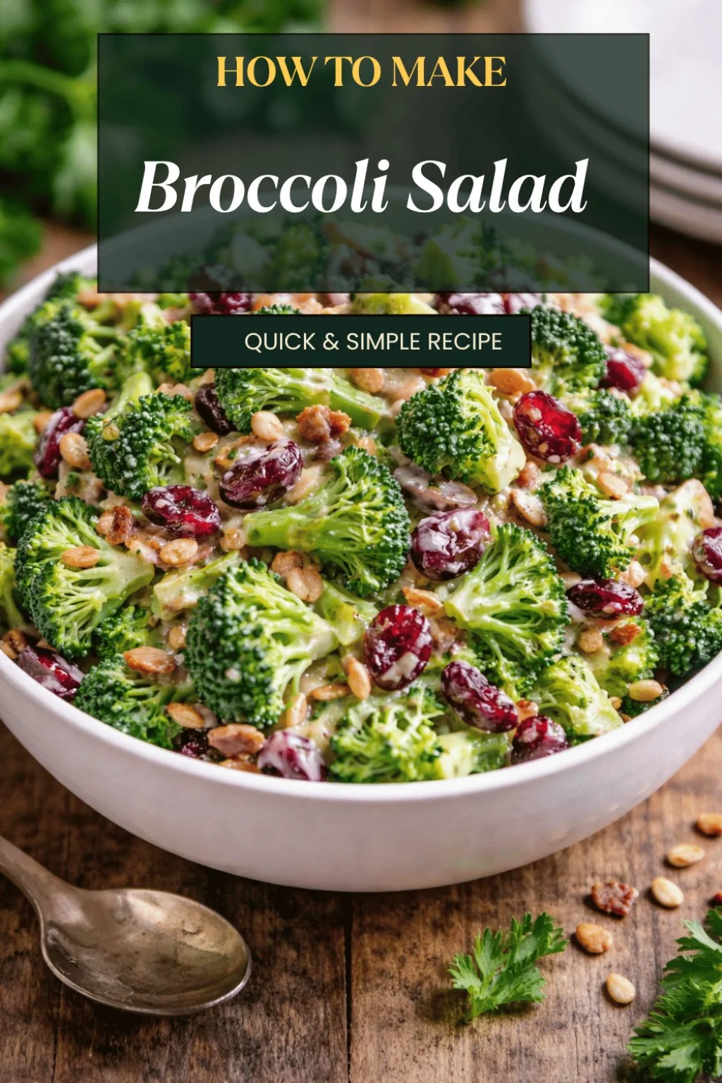 A crunchy, creamy salad featuring broccoli, dried cranberries, and sunflower seeds, perfect for family dinners and potlucks.