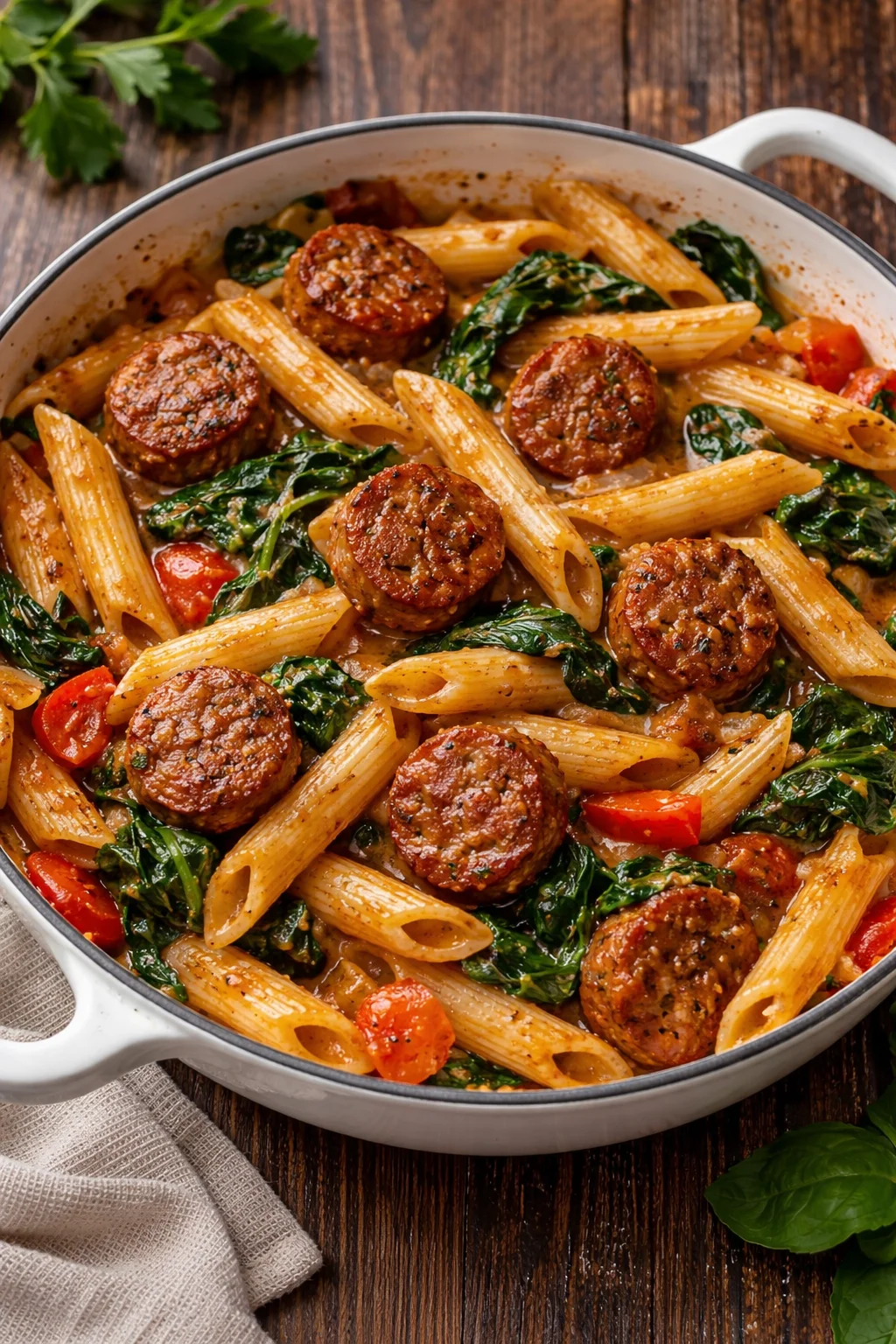 • Healthier swap: Use turkey sausage and Greek yogurt instead of heavy cream for a lighter healthy option.