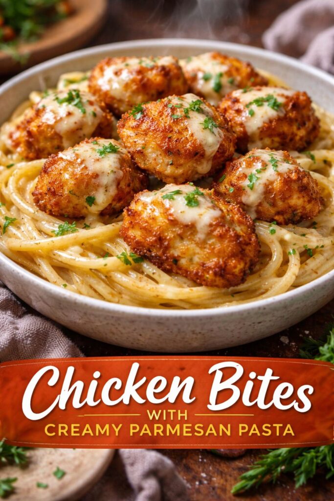 Chicken Bites with Creamy Parmesan Pasta: A Hug in a Bowl