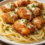Imagine the moment you serve this indulgent treat—a plateful of golden chicken bites tossed in a luscious, velvety parmesan sauce, lovingly paired with perfectly cooked pasta. It’s not just a meal; it’s an experience that brings people together and transforms an ordinary evening into something special.
