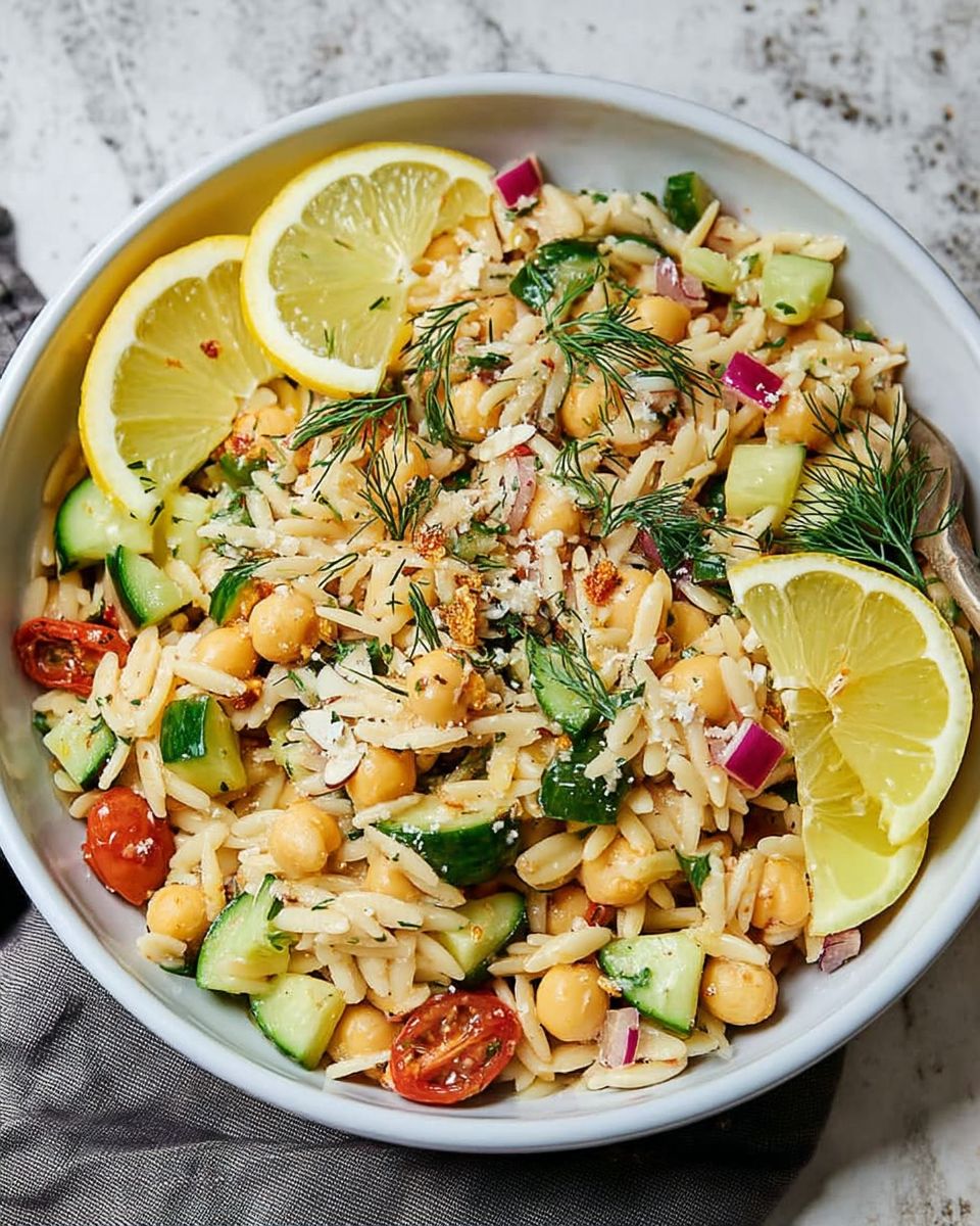Brighten your week with this Chickpea Orzo Salad! It’s refreshing and packed with flavor. Perfect for busy days or a light weekend treat. Trust me, the lemon-dill dressing is a game changer!