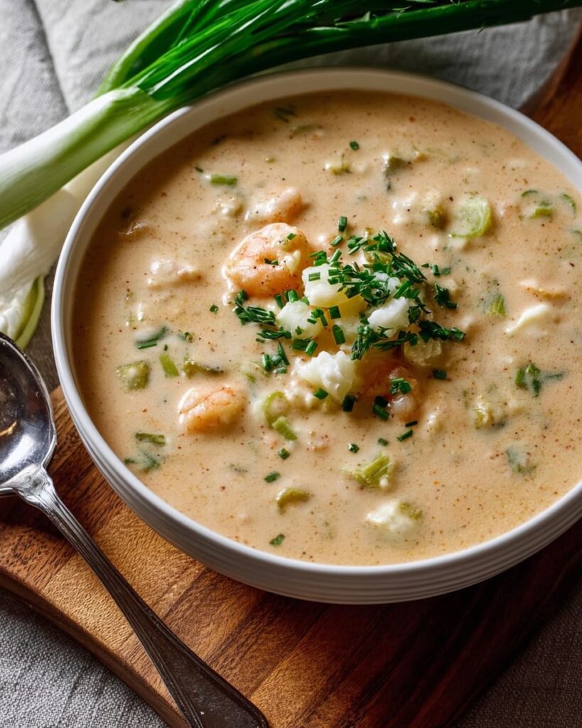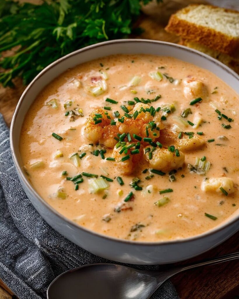 A comforting and creamy bisque brimming with the rich flavors of crab and shrimp, perfect for chilly nights or gatherings.