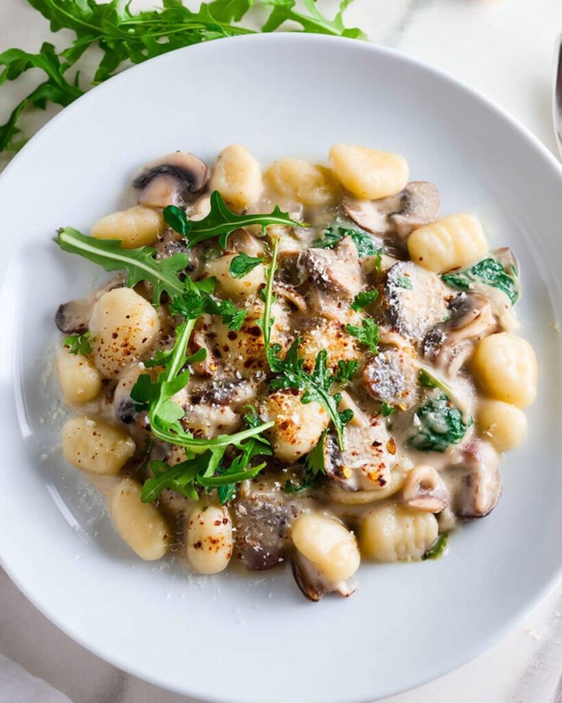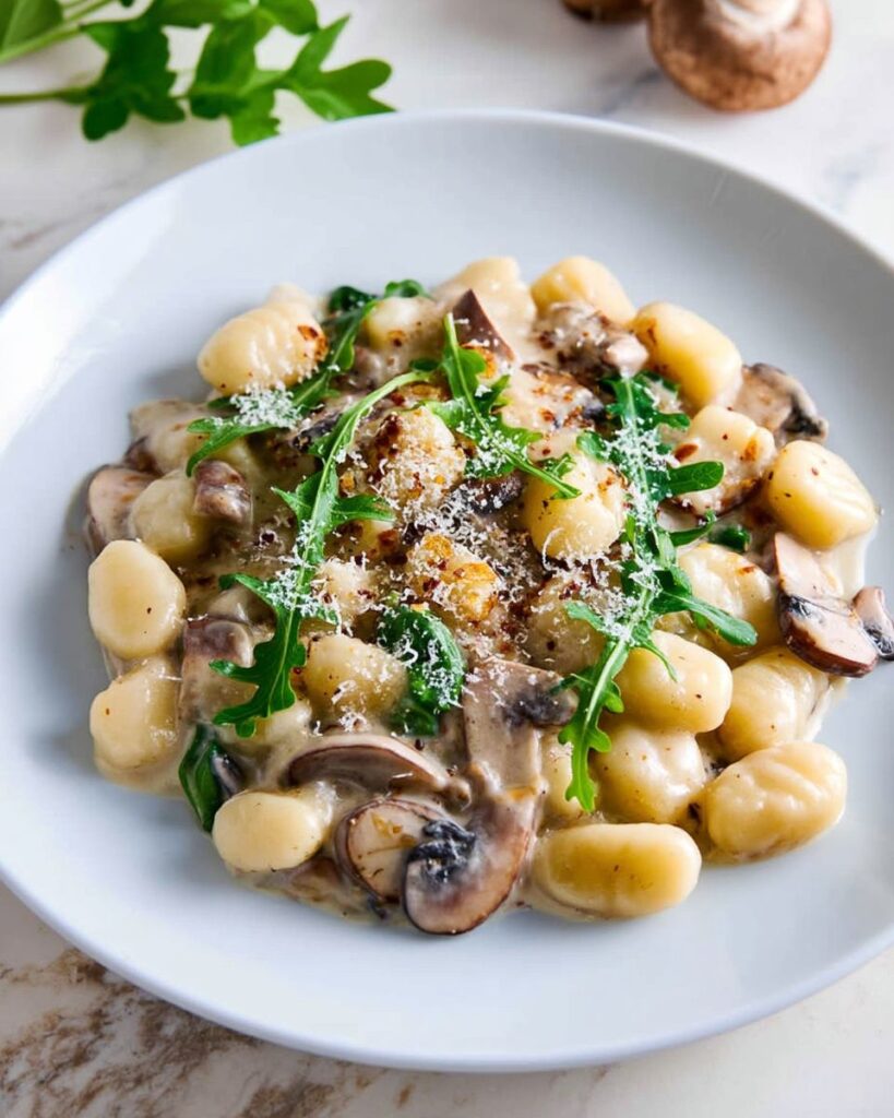 A comforting and creamy dish made with gnocchi and mushrooms, perfect for family dinners or special occasions.