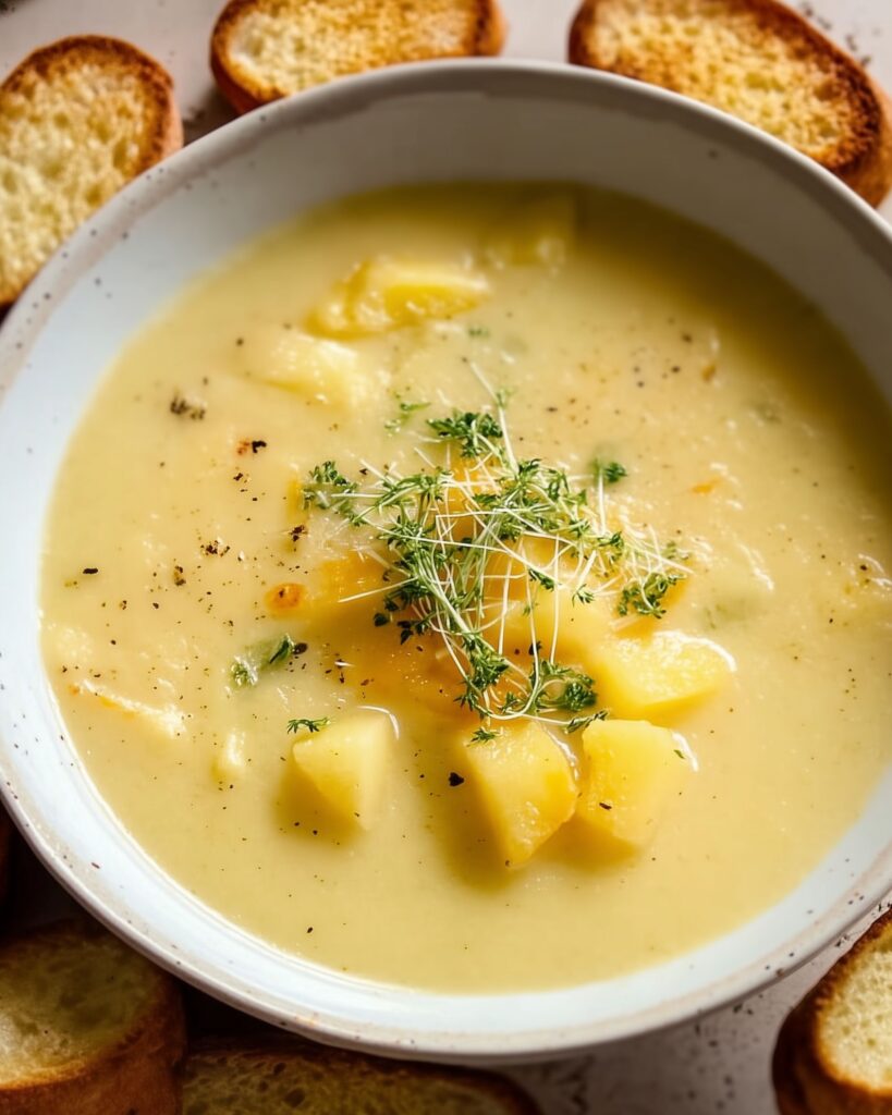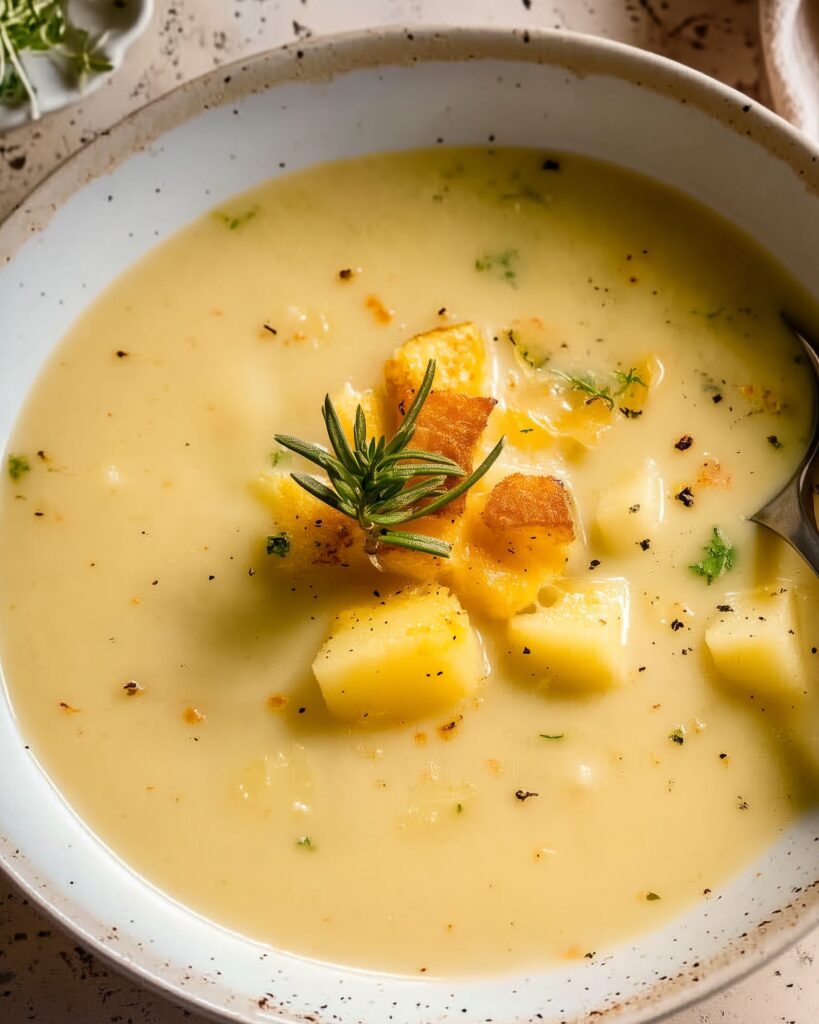A heartwarming and creamy potato soup, enriched with freshly grated Parmesan cheese, perfect for chilly evenings.