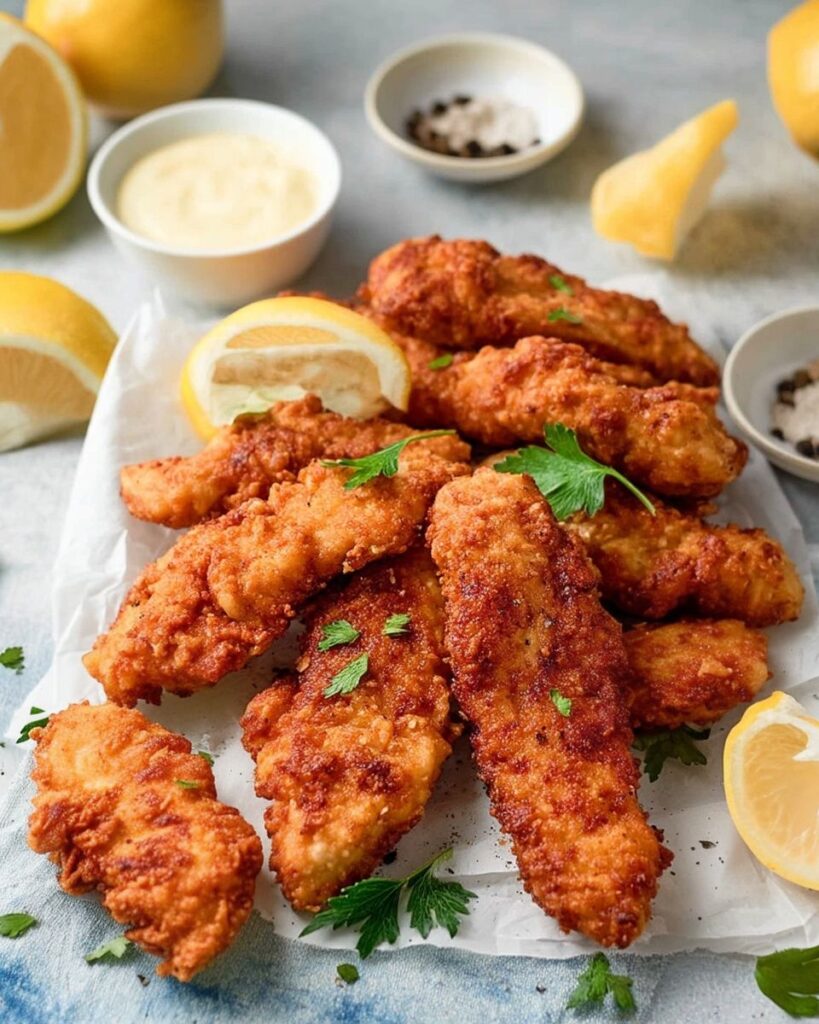 Juicy chicken tenders soaked in buttermilk and coated with a crispy, flavorful crust, perfect for family dinners or festive gatherings.
