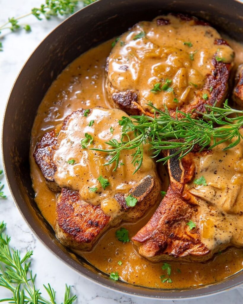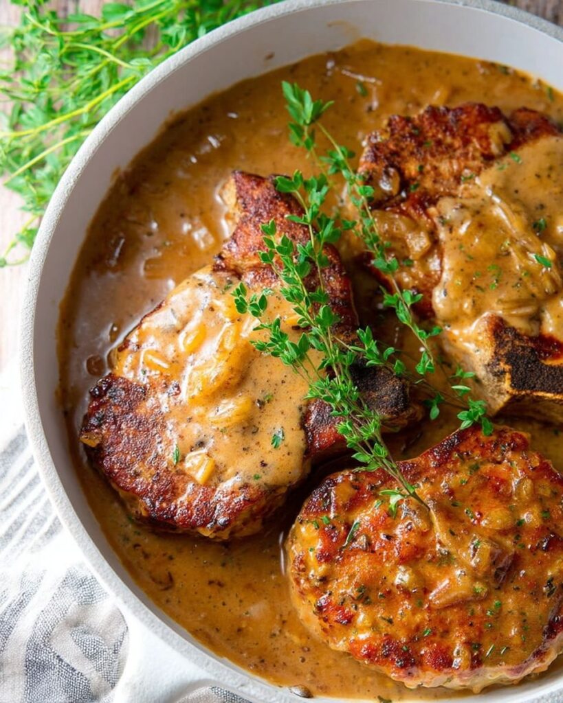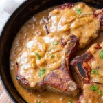 Crispy and golden-brown pork chops served with rich white gravy, a Southern classic that’s beloved by families.