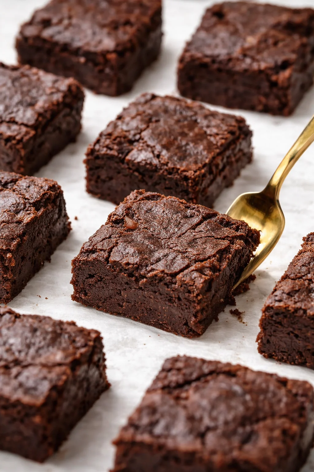 - Bake for 25–30 minutes. You want the edges set with a slight jiggle in the center — the brownies will continue to set as they cool. The top should develop a thin, crackly skin that gives way to fudgy goodness beneath.