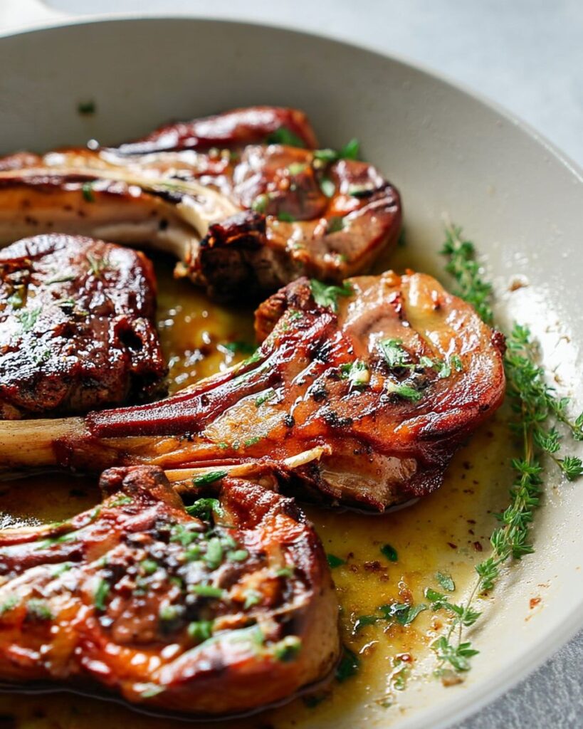 Tender and juicy lamb chops coated with a fragrant garlic and herb crust, perfect for family gatherings and festive meals.