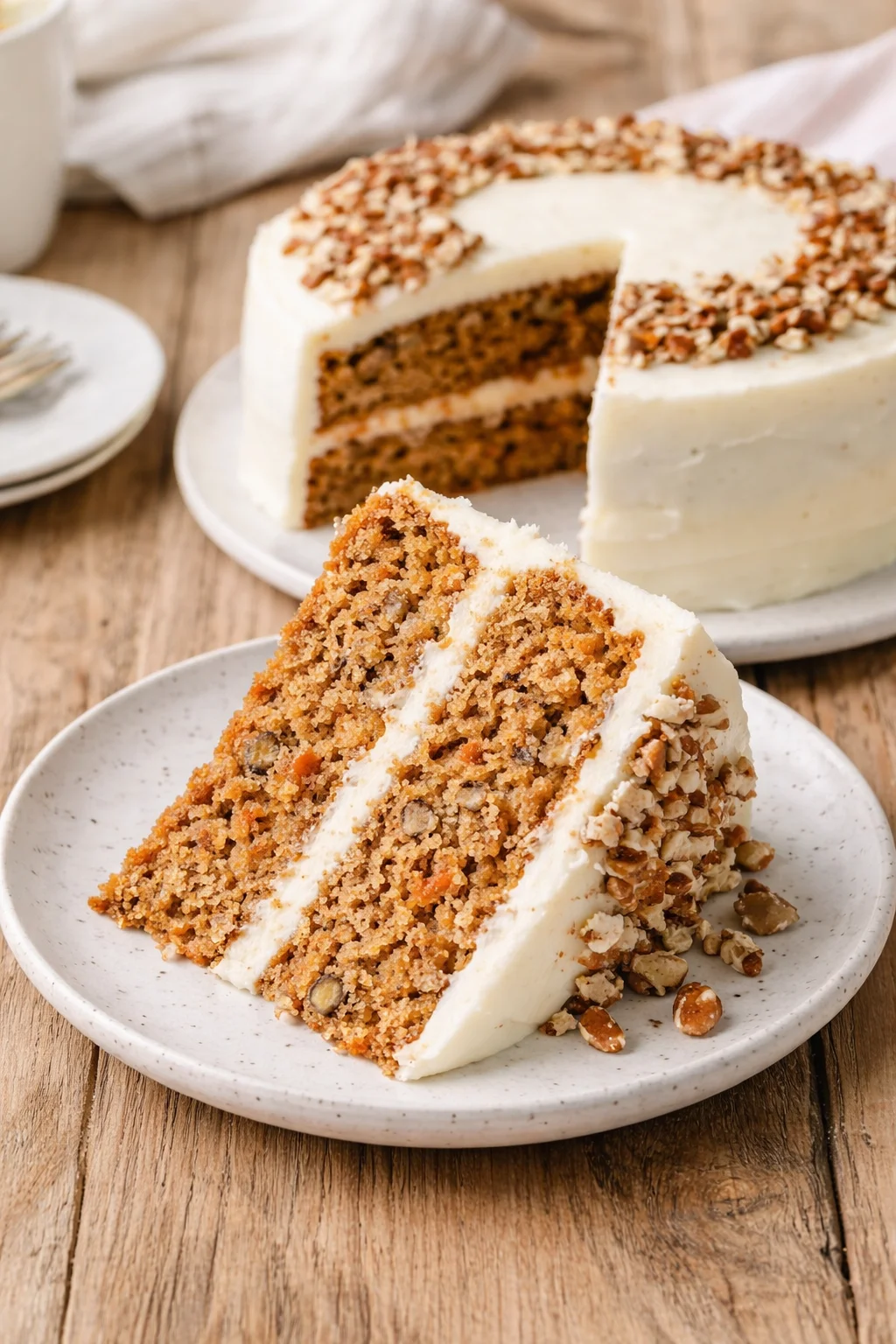 Grate carrots finely for moisture that melds into the crumb. Measure flour correctly to prevent a dry, dense cake.