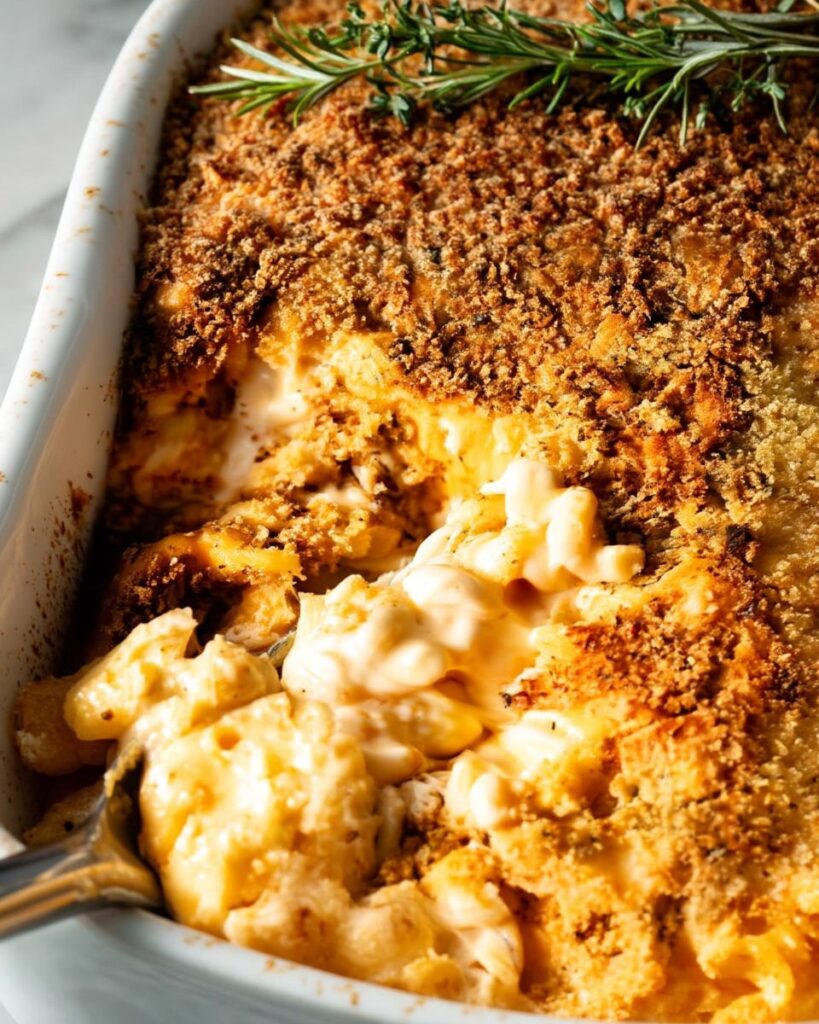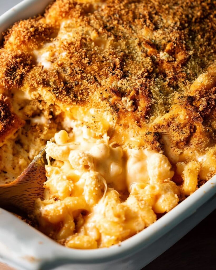 A comforting and creamy baked macaroni and cheese recipe that brings warmth and nostalgia to your dinner table.
