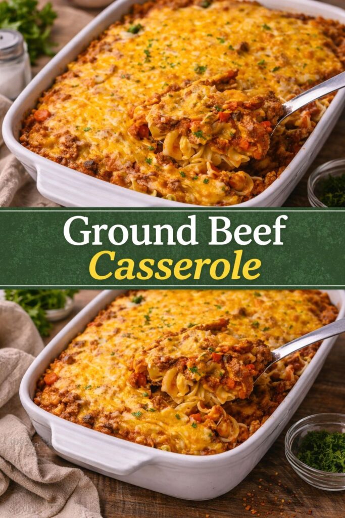 Enjoy your Ground Beef Casserole with a simple side salad for a healthy balance, or serve it with crusty garlic bread to soak up every bit of cheesy goodness. A glass of crisp white wine pairs wonderfully, elevating your cozy family dinner into a special occasion. Whether it’s a fun family gathering, a cozy winter evening, or a festive holiday meal, this dish fits perfectly.