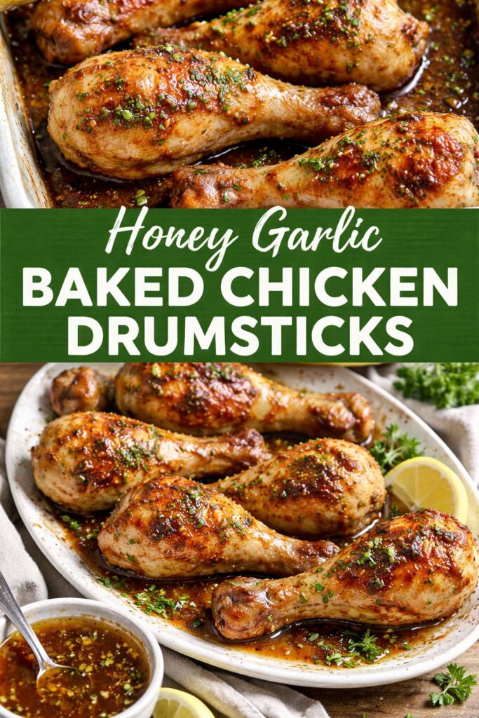 Deliciously sweet and savory baked chicken drumsticks coated in a honey garlic marinade, perfect for a cozy family dinner.