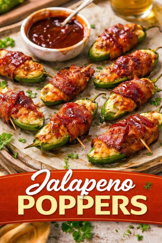 Delicious and comforting Jalapeno Poppers filled with creamy cheese and wrapped in crispy bacon.