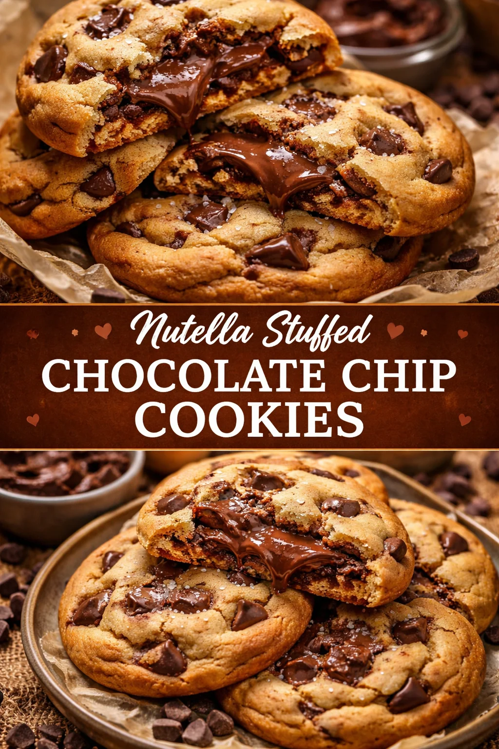 Irresistibly warm Nutella Stuffed Chocolate Chip Cookies with a crisp edge and molten hazelnut-chocolate center.