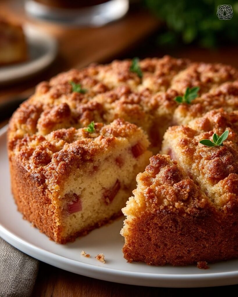A delightful, moist coffee cake featuring sweet-tart rhubarb, perfect for breakfast or any gathering.