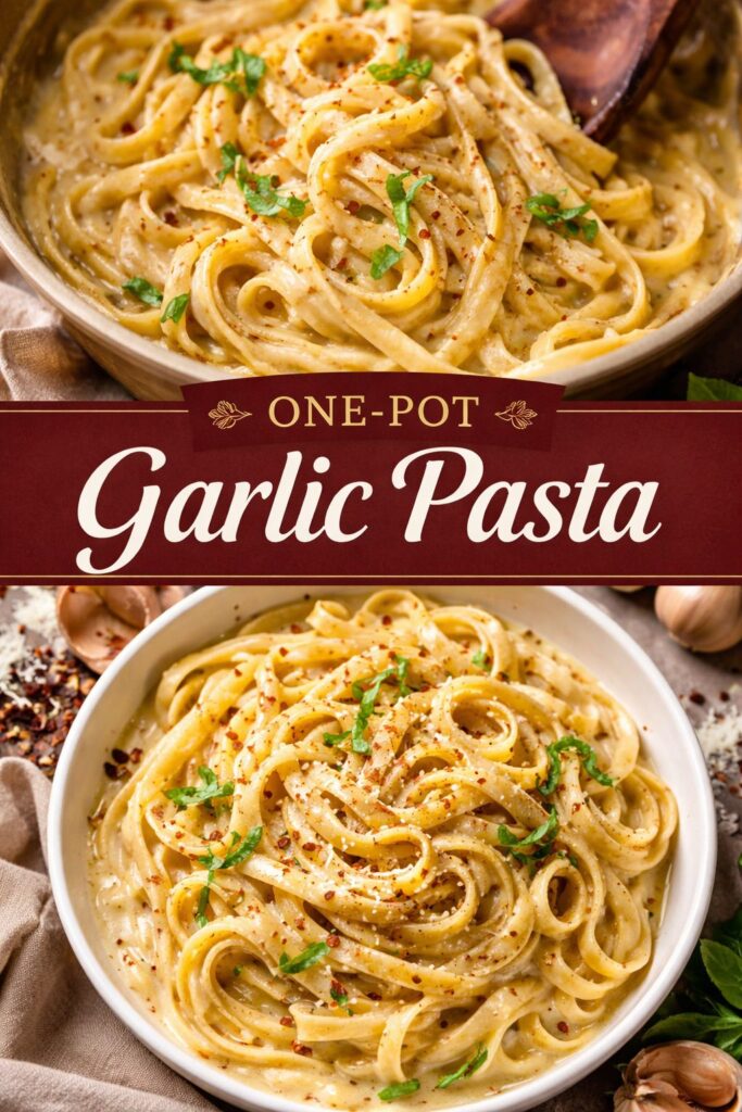 Keywords: pasta, creamy garlic, one pot, vegetarian, easy dinner