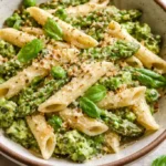 A heartwarming and creamy pasta dish made with penne, fresh basil, and garlic, perfect for family dinners.