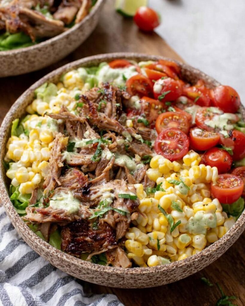 5. Assemble the Bowls: Layer pulled pork and avocado slaw in individual bowls, garnishing with extra cilantro or lime wedges if desired.