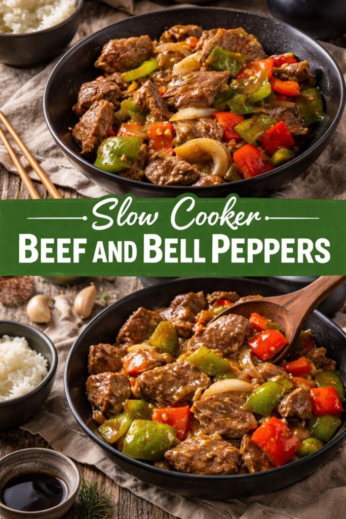 Keywords: slow cooker, beef, bell peppers, family dinner, comfort food