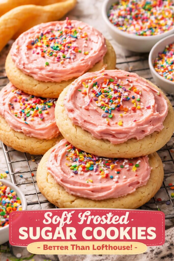Delightfully soft and chewy sugar cookies topped with creamy frosting, perfect for family gatherings and festive occasions.