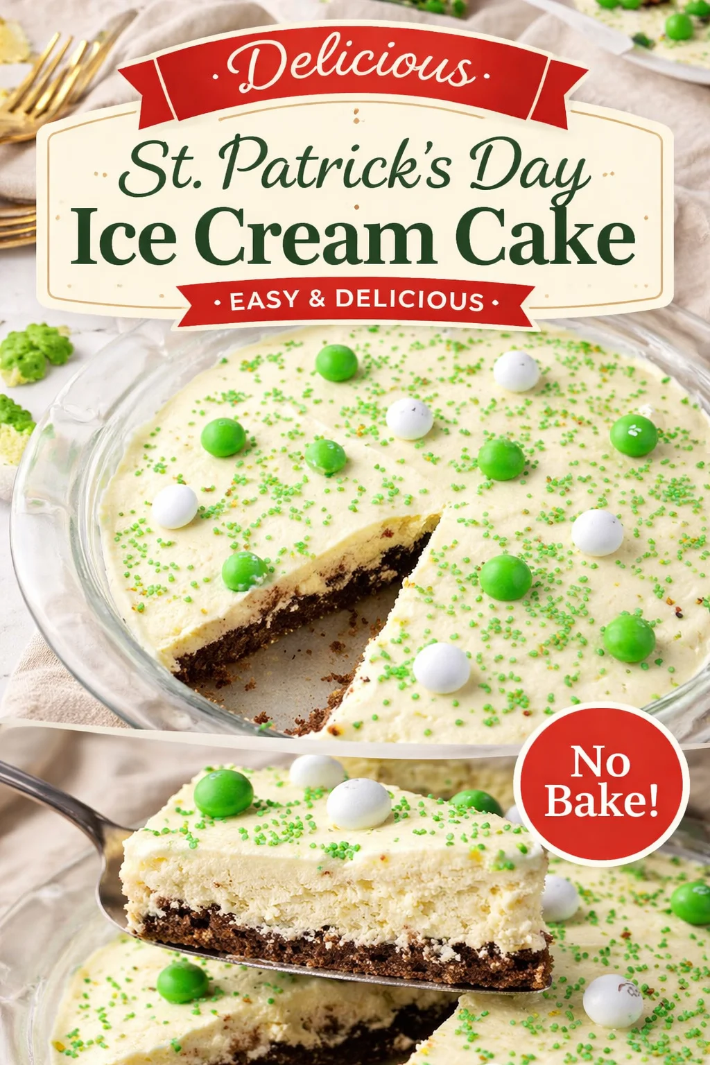 Imagine slicing into this delightful St. Patrick’s Day Ice Cream Cake, each piece revealing layers of cake and ice cream, adorned with lively green sprinkles. Pair it with a cup of freshly brewed coffee for the adults, or a delicious hot chocolate for the kids. This cake isn’t just a dessert; it’s a centerpiece for celebration, perfect for family gatherings, St. Patrick’s Day parties, or even cozy nights in with loved ones.