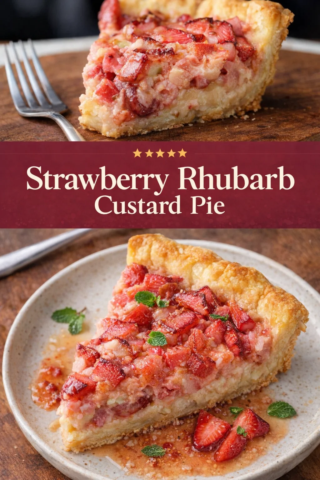 Keywords: strawberry rhubarb pie, custard pie, dessert recipes, spring desserts