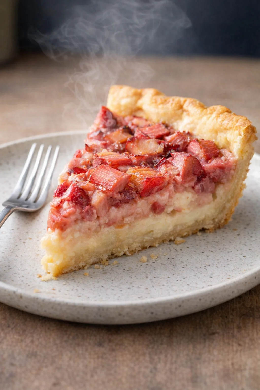 A delightful blend of tart rhubarb and sweet strawberries in a creamy custard filling, perfect for family gatherings and cozy meals.