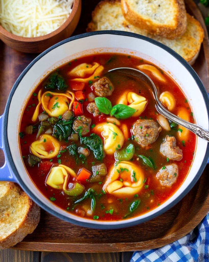 This heartwarming Tortellini Soup with Italian Sausage and Spinach is perfect for family gatherings, delivering rich flavors and comfort in every spoonful.